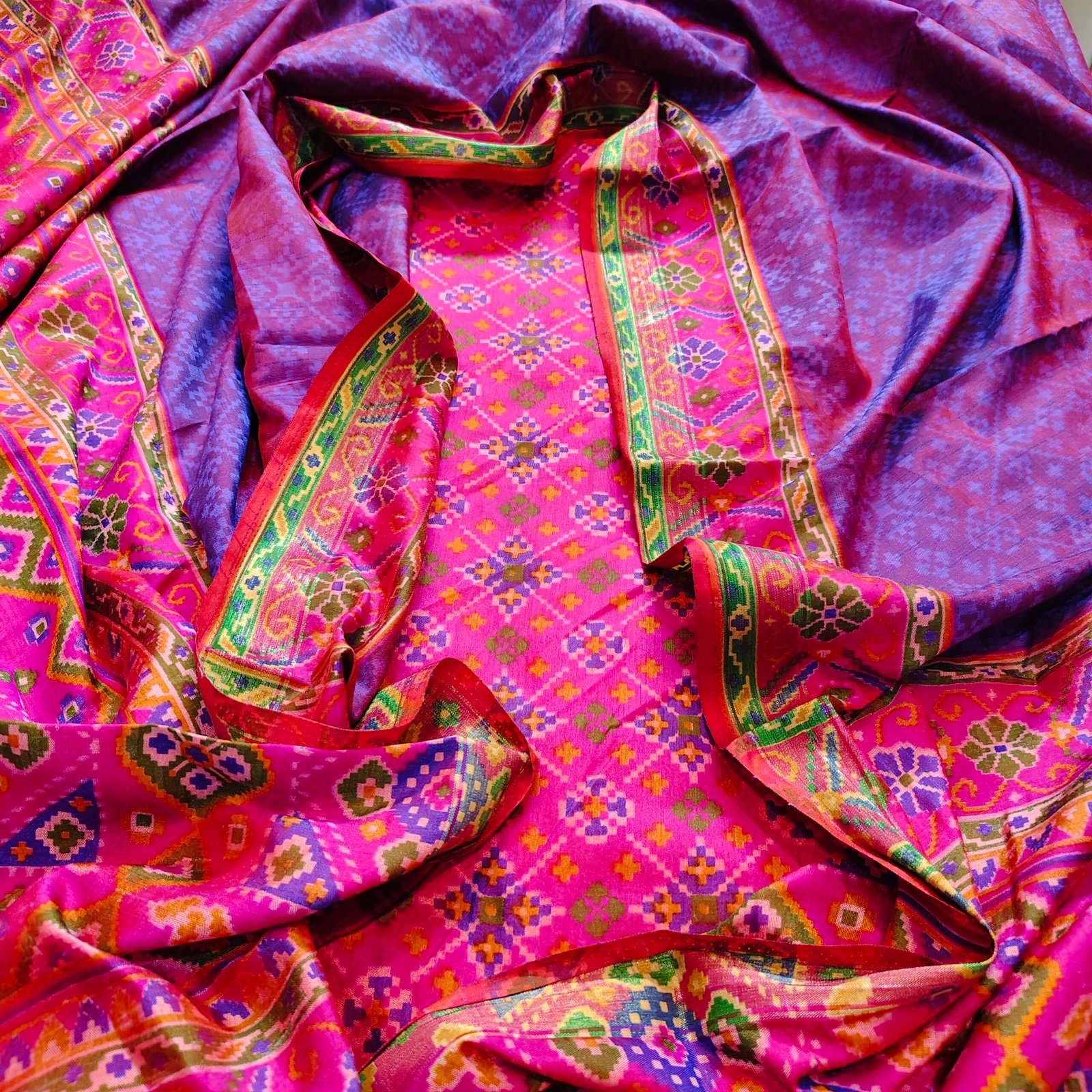 Maheshwari Silk suit with digital print dupatta.