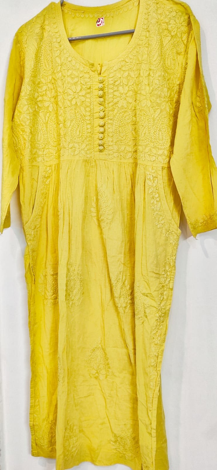 Dobi cotton fine work chikankari kurti  with inner. Size- 40 inches. Length -46 inches.
