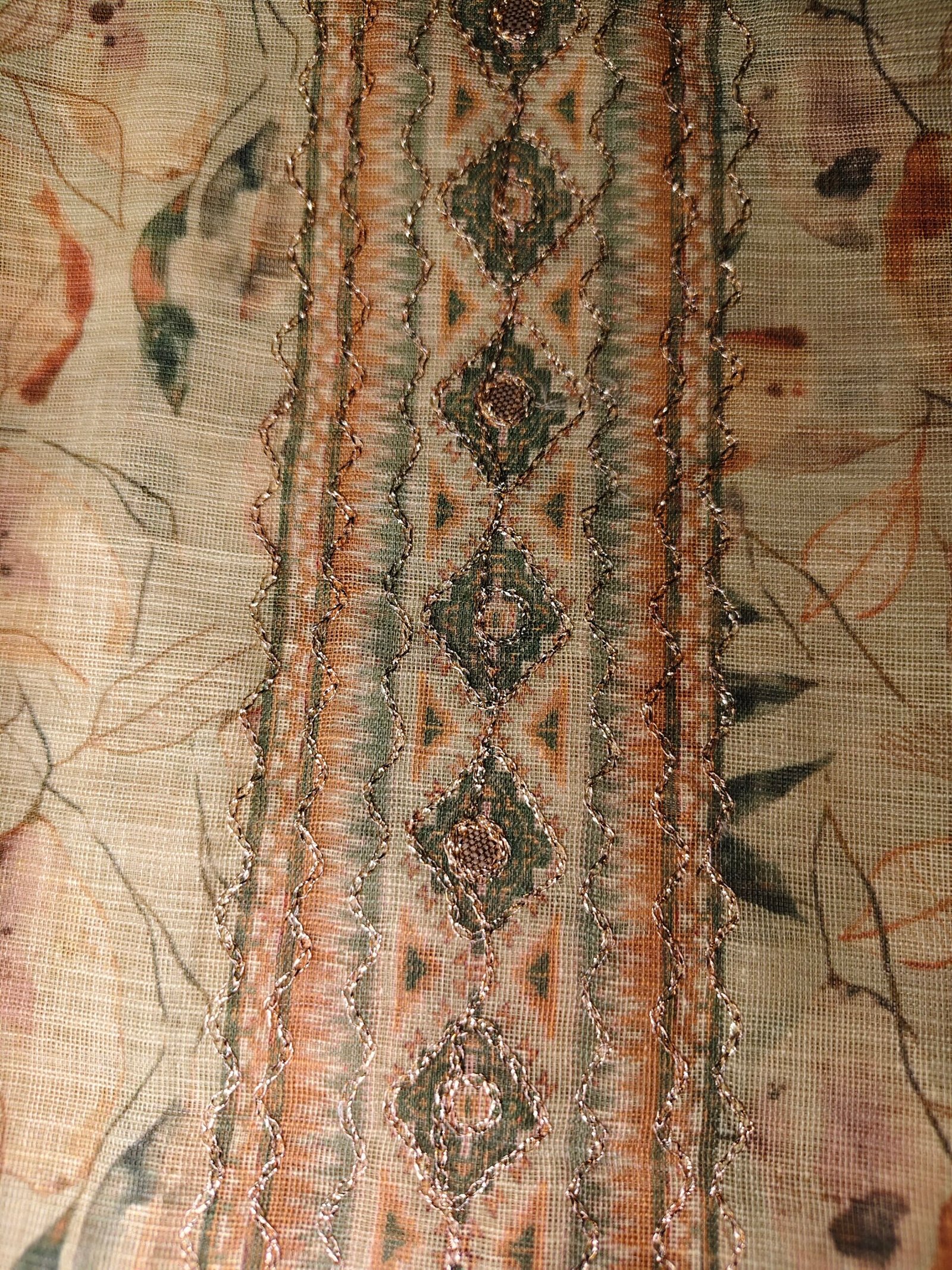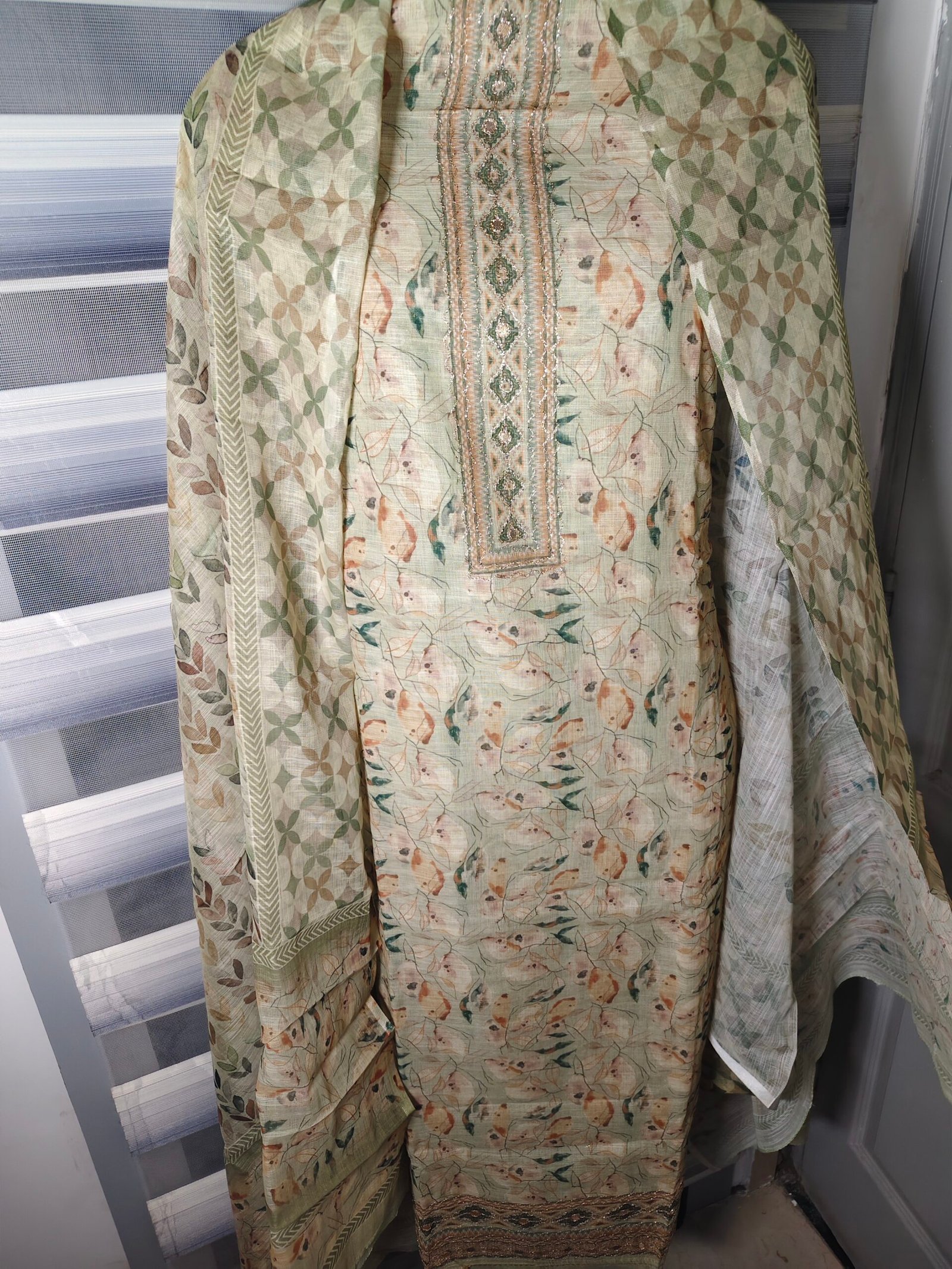 Linen cotton 3- piece suit with neemzari work on neckline and gotta patti lace on daaman .
