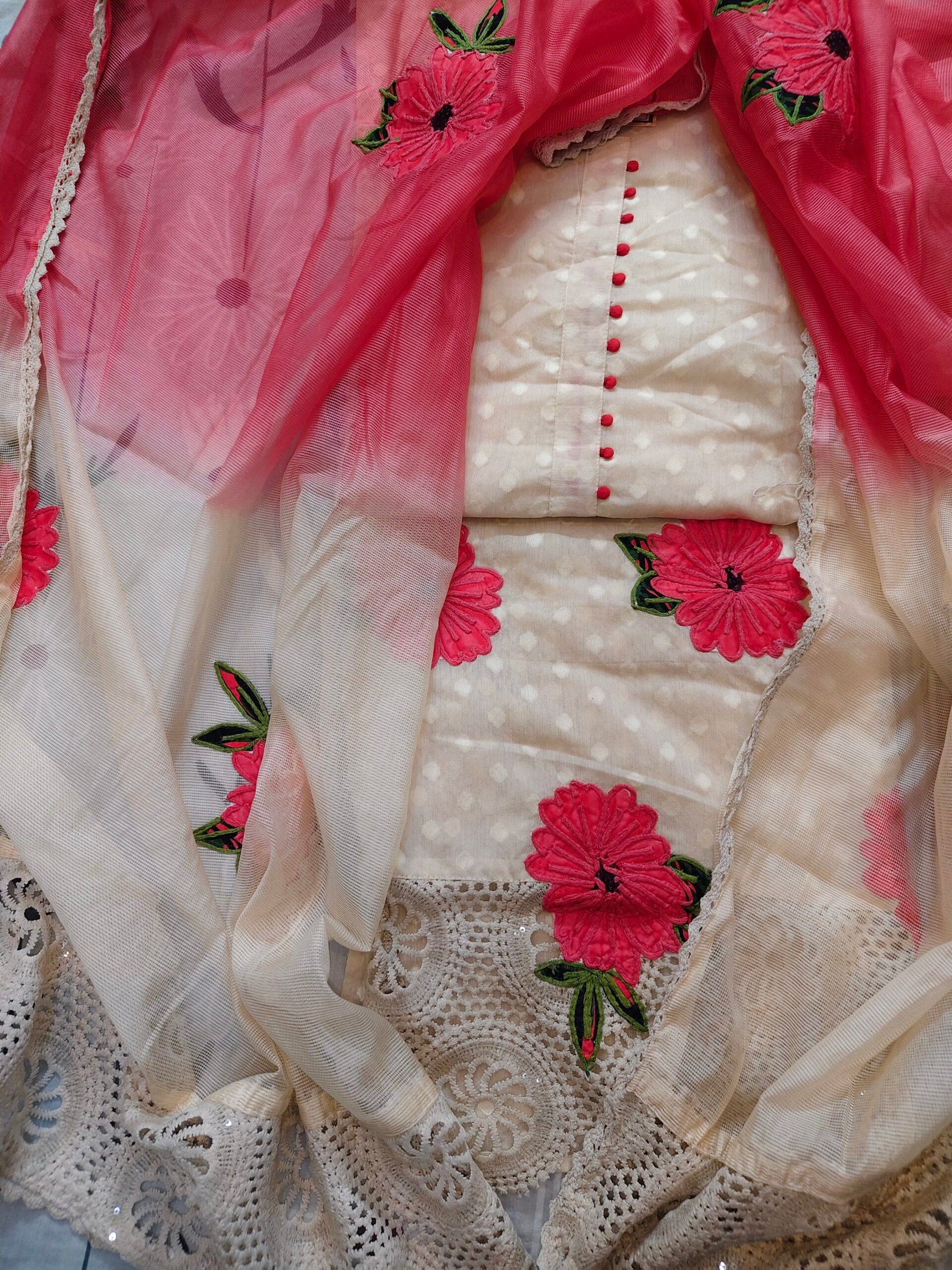 Dupatta -applique and lace work .