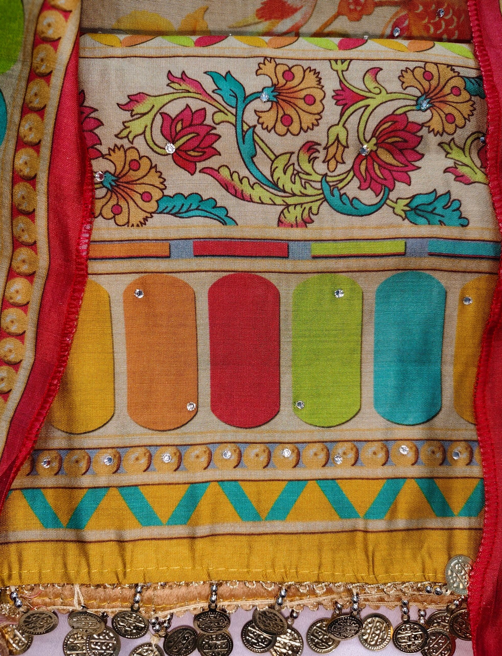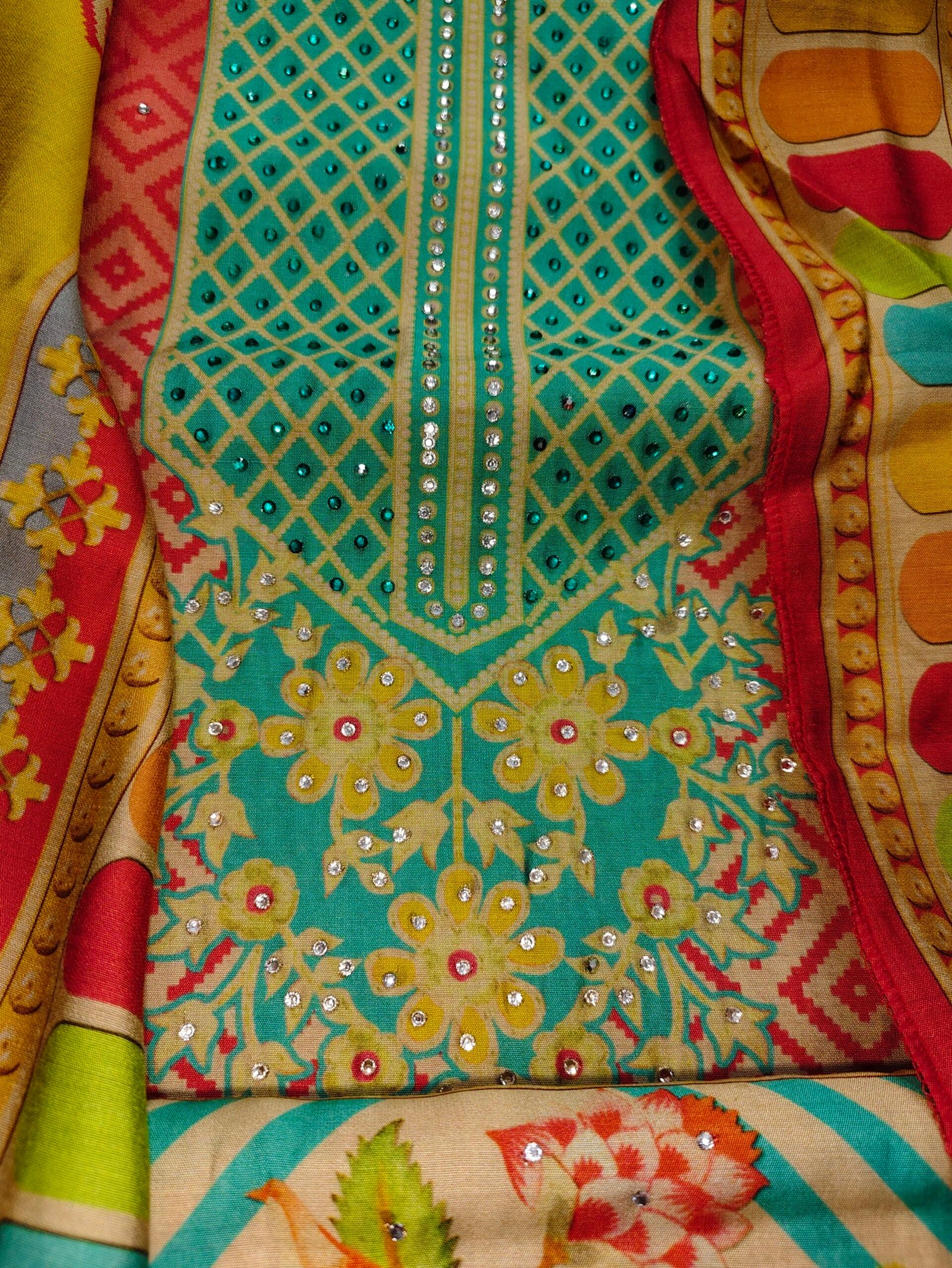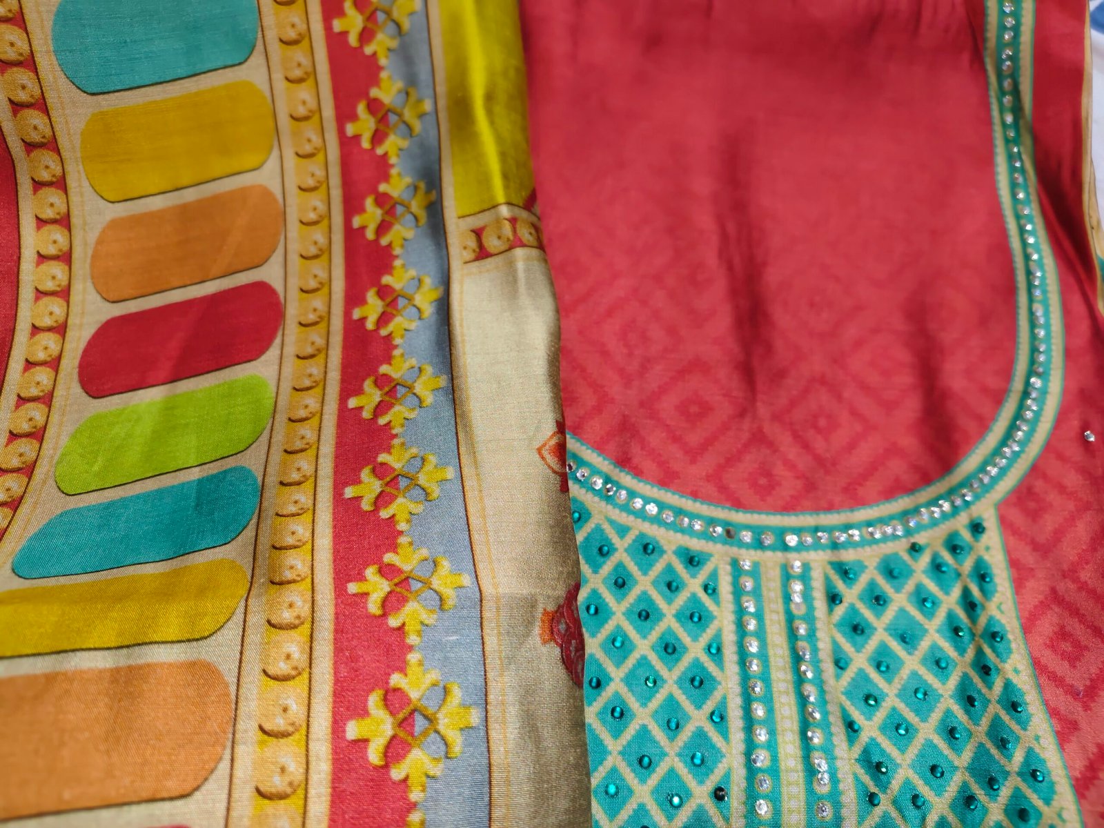 Crepe silk fabric 3-piece suit with stone work on neckline.