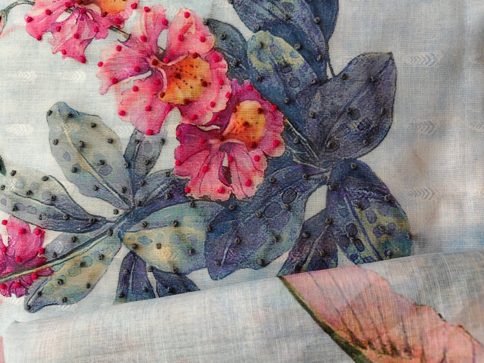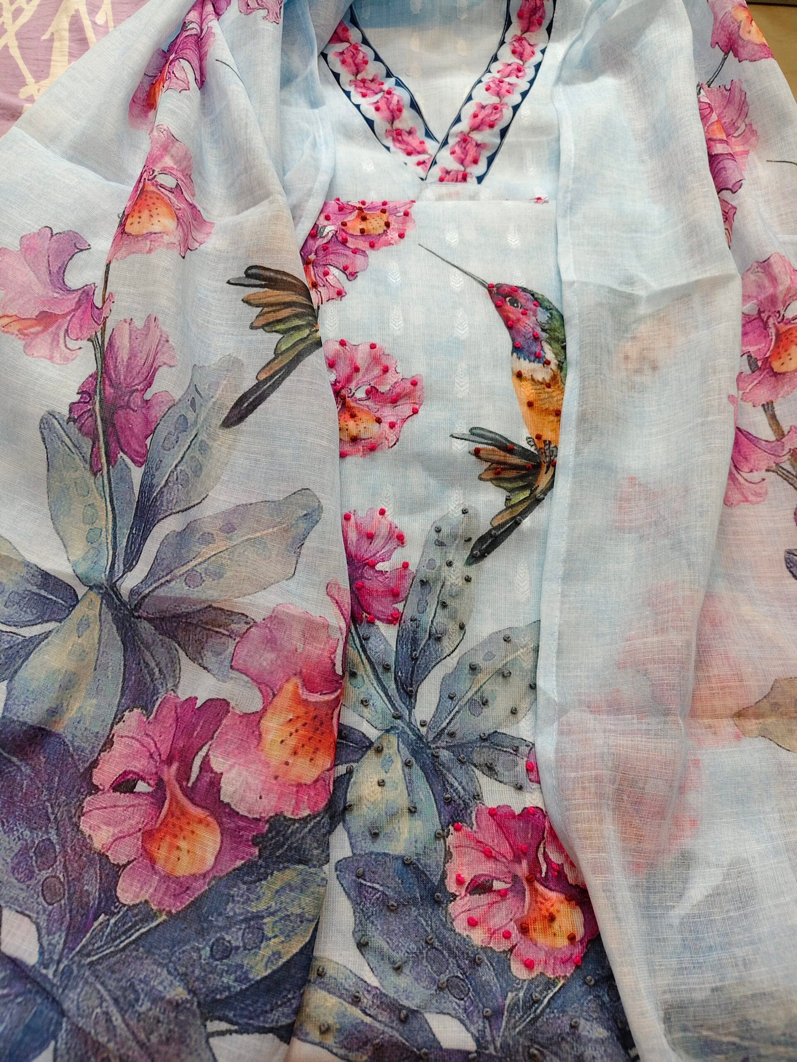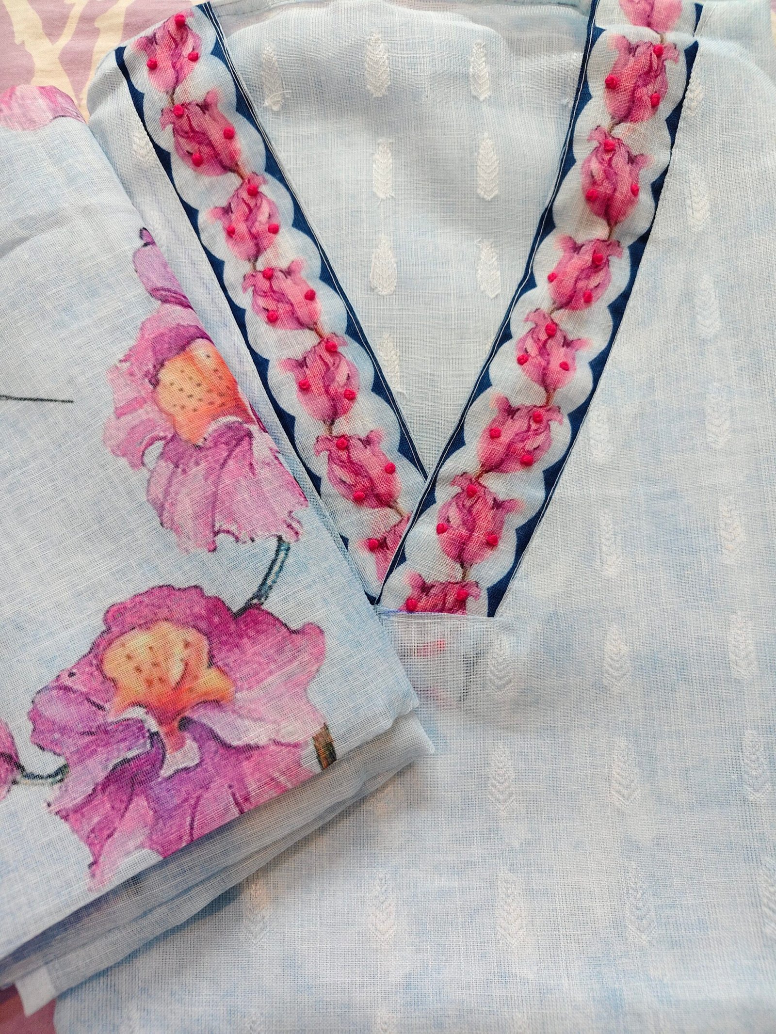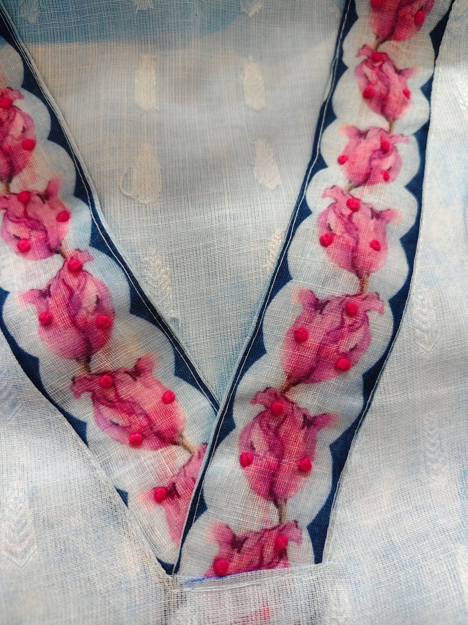 Linen cotton 3-piece suit with hand work all over suit. Bottom -Santoon (2.5m)