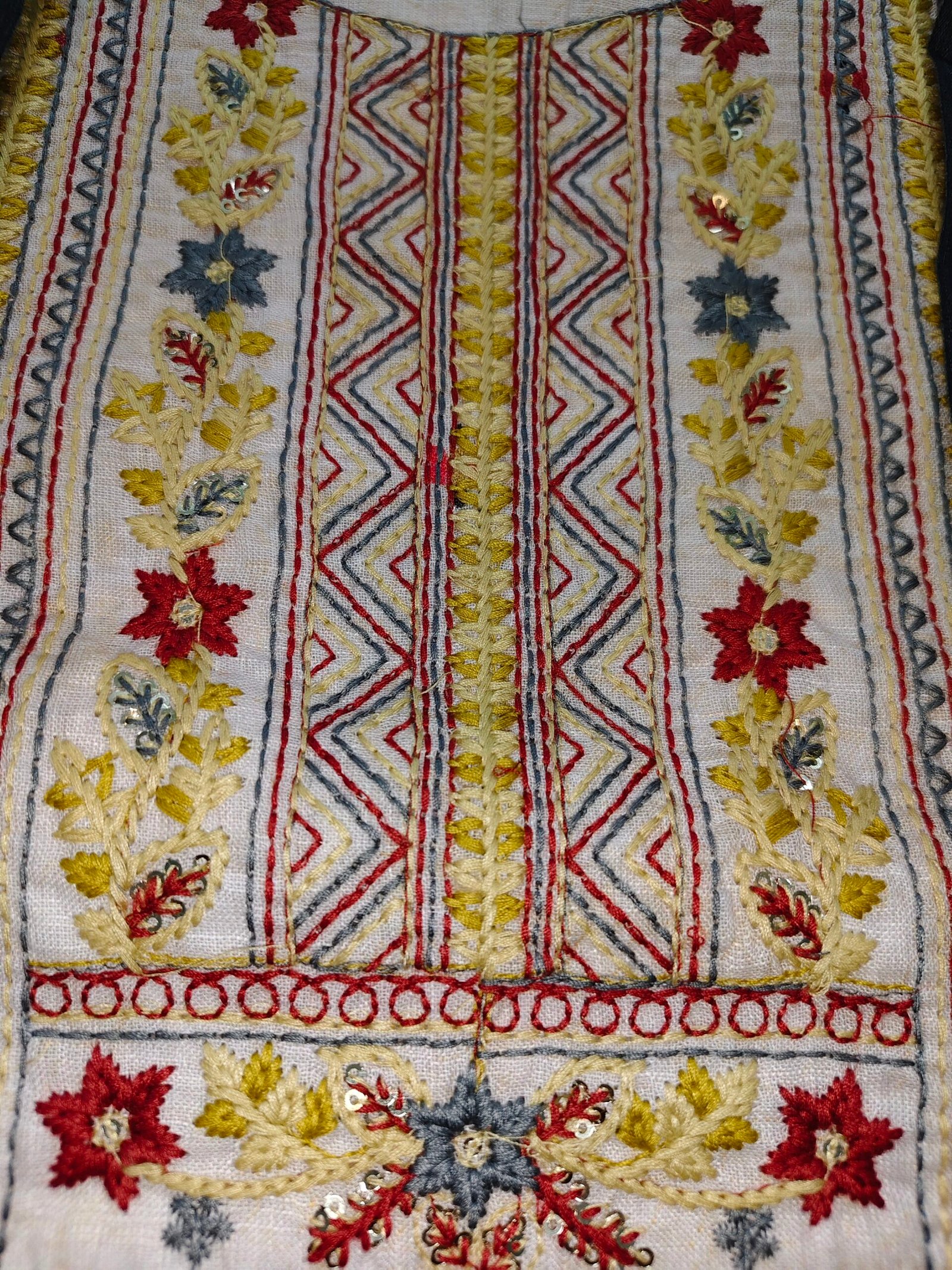 Linen cotton 3-piece suit with hand embroidery on neckline.