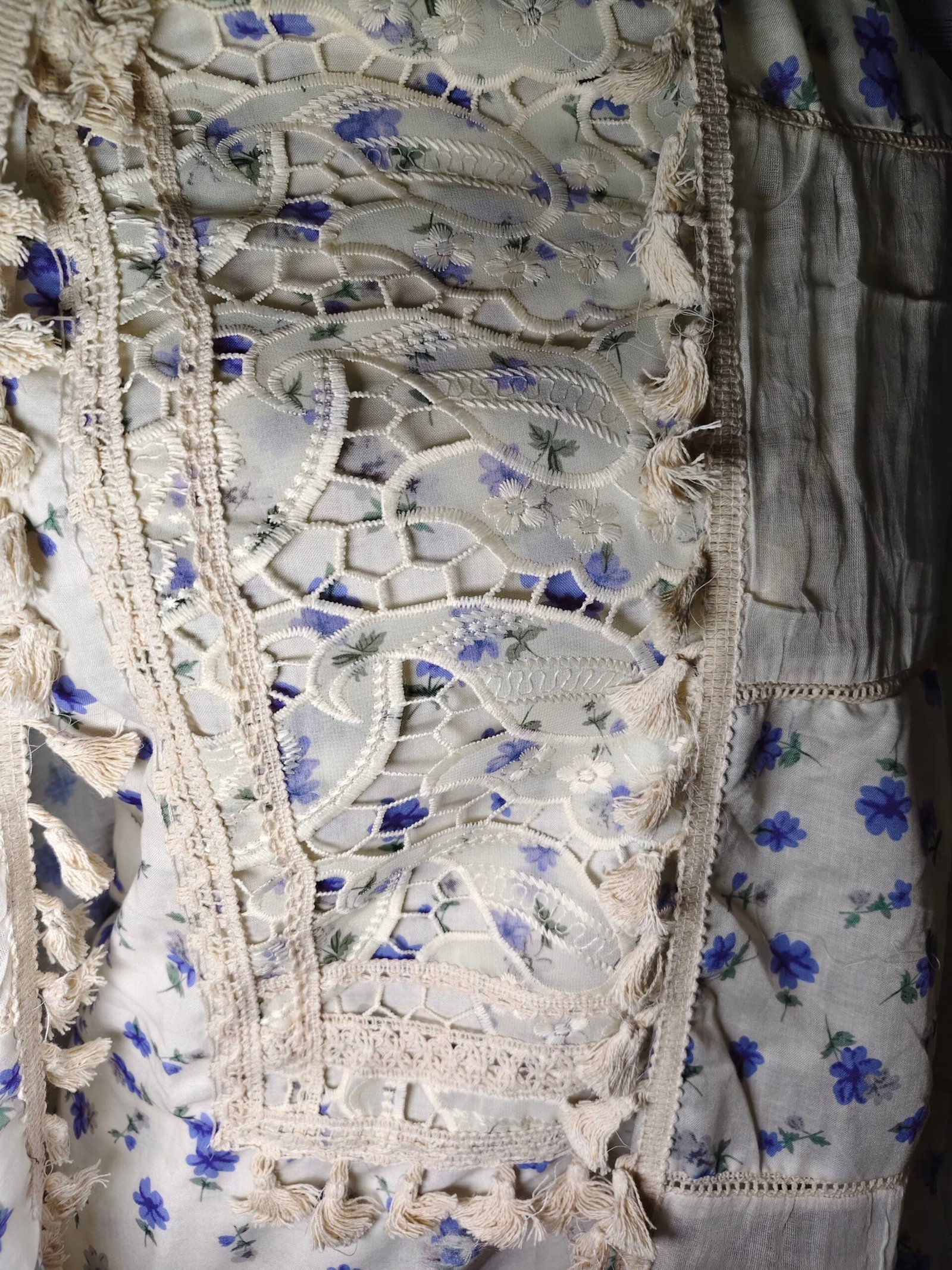 Cotton 3-piece suit with lace work on kurta and dupatta Bottom -cotton (2.5m)