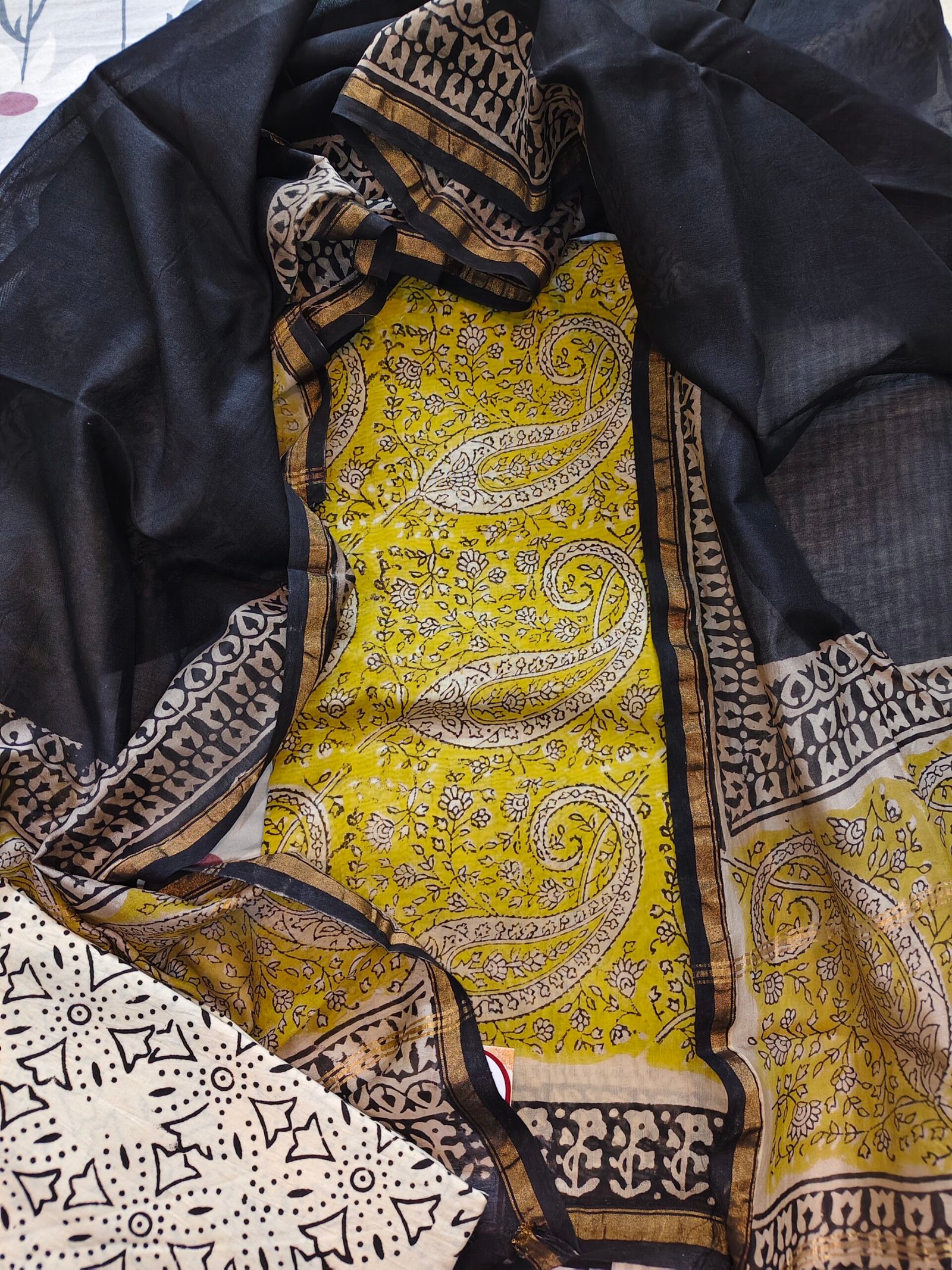 Chanderi silk 3 -piece suit. Bottom -cotton (2.5m)