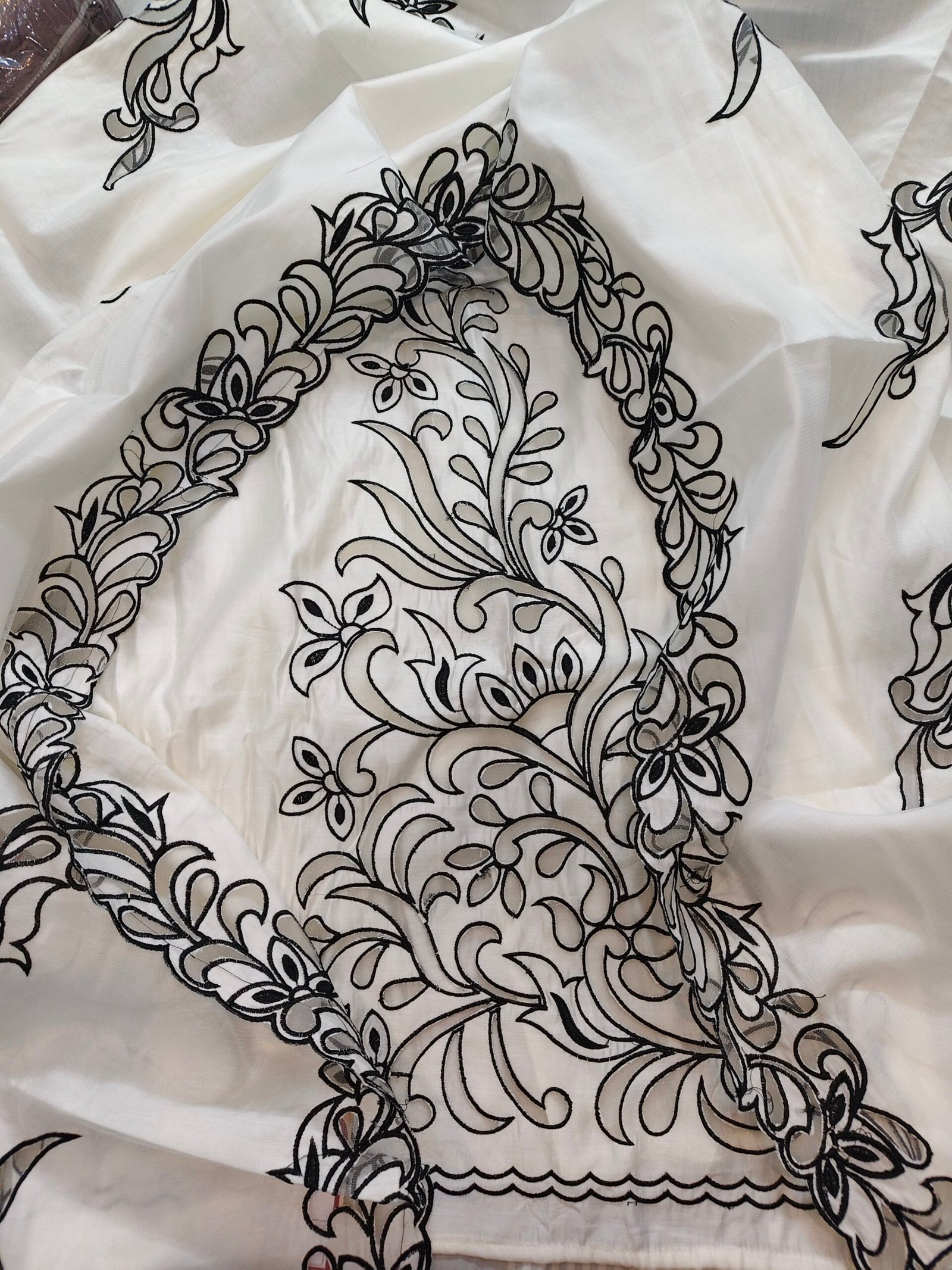 Chanderi silk 3- piece suit with cut work embroidery. Bottom -Santoon (2.5m)