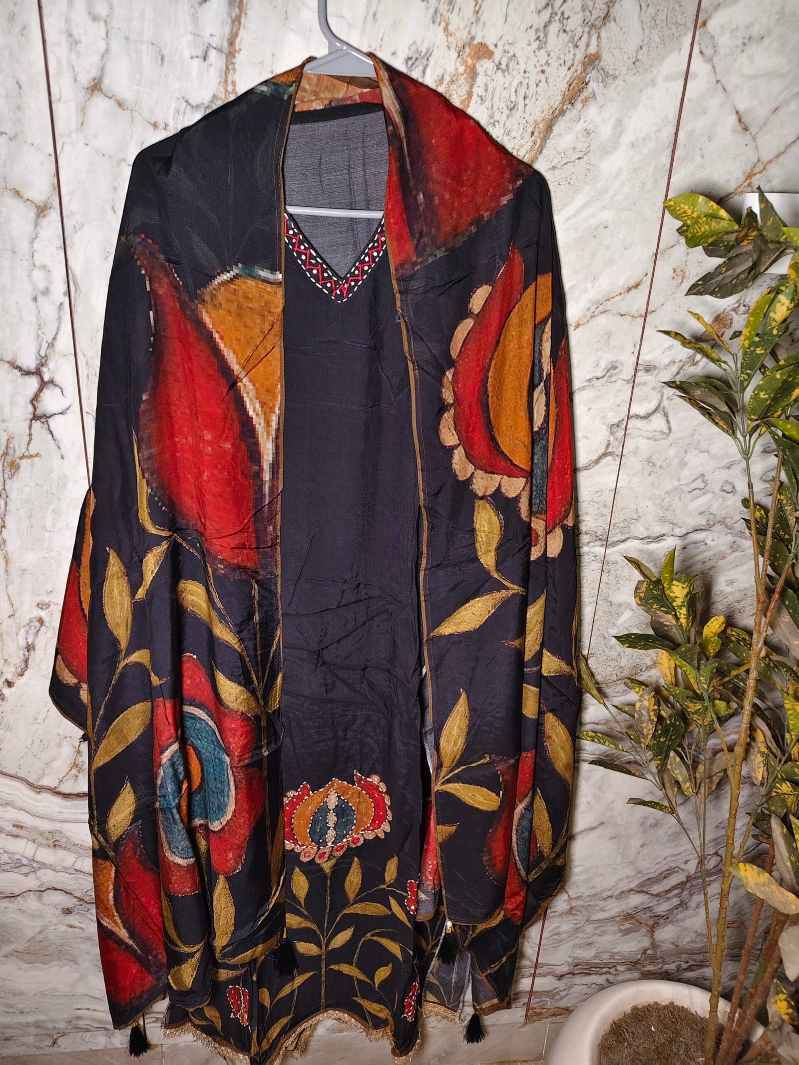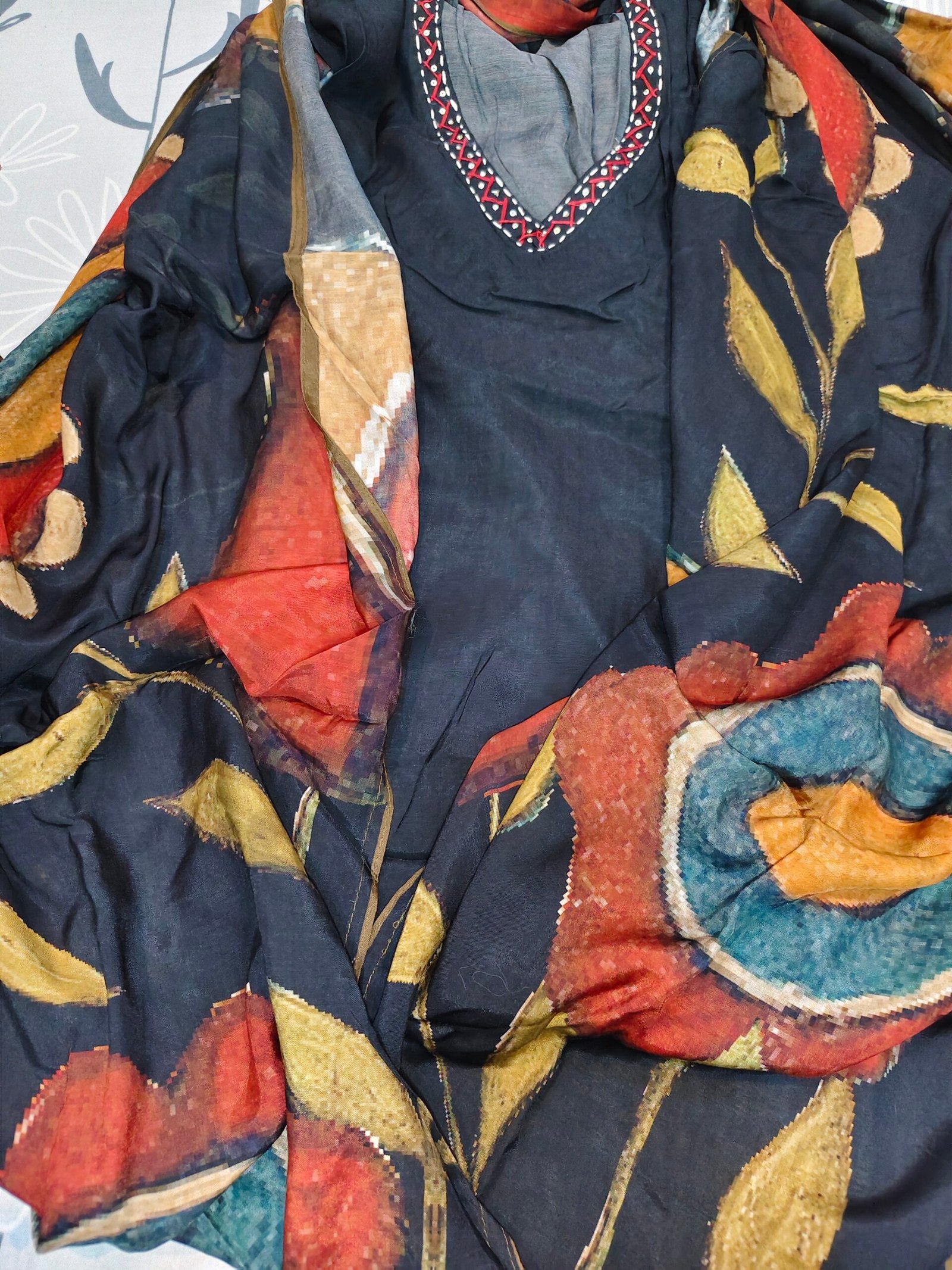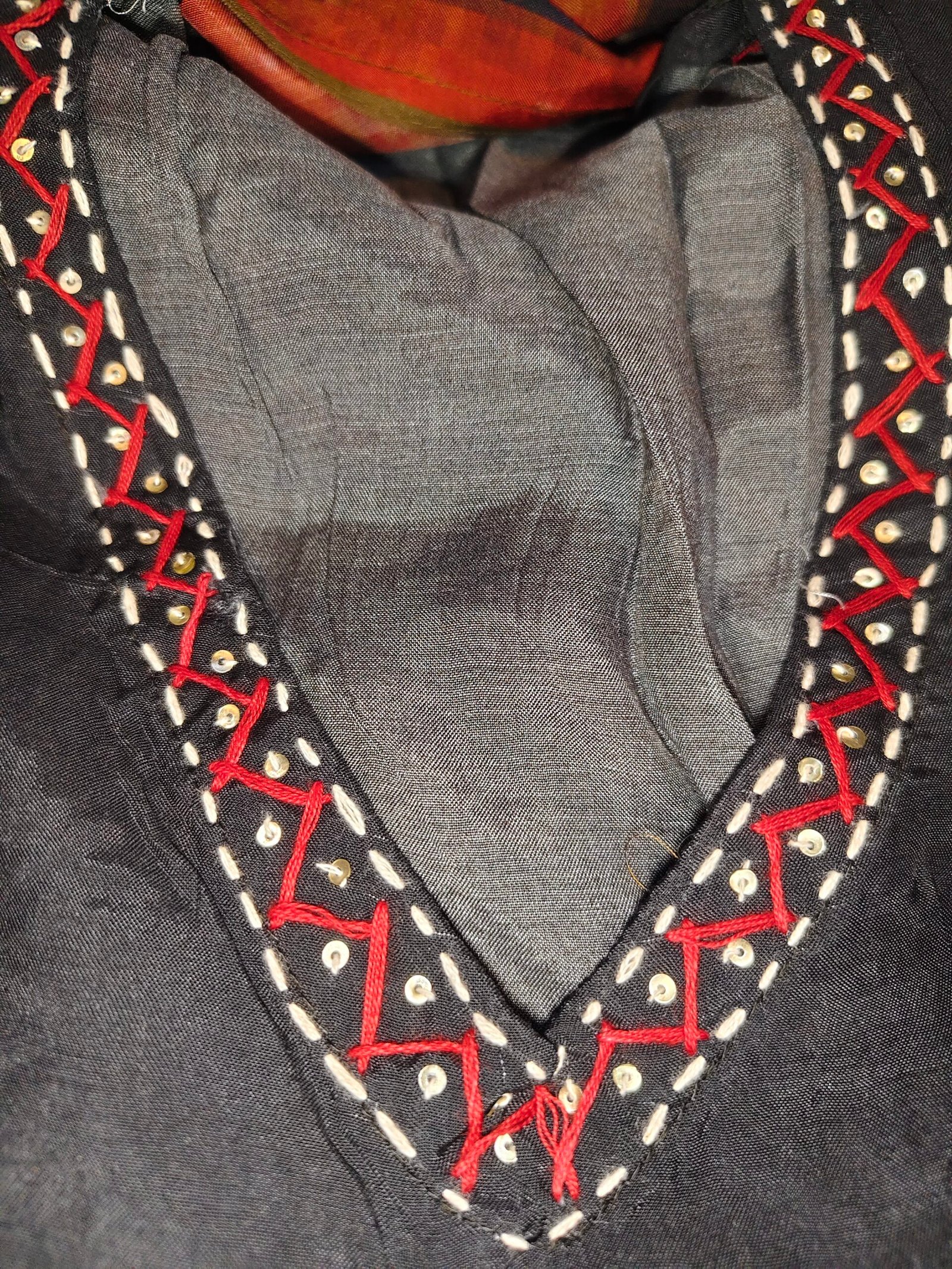 Modal silk fabric with hand work on neckline and daaman. Bottom -Santoon (2.5m)