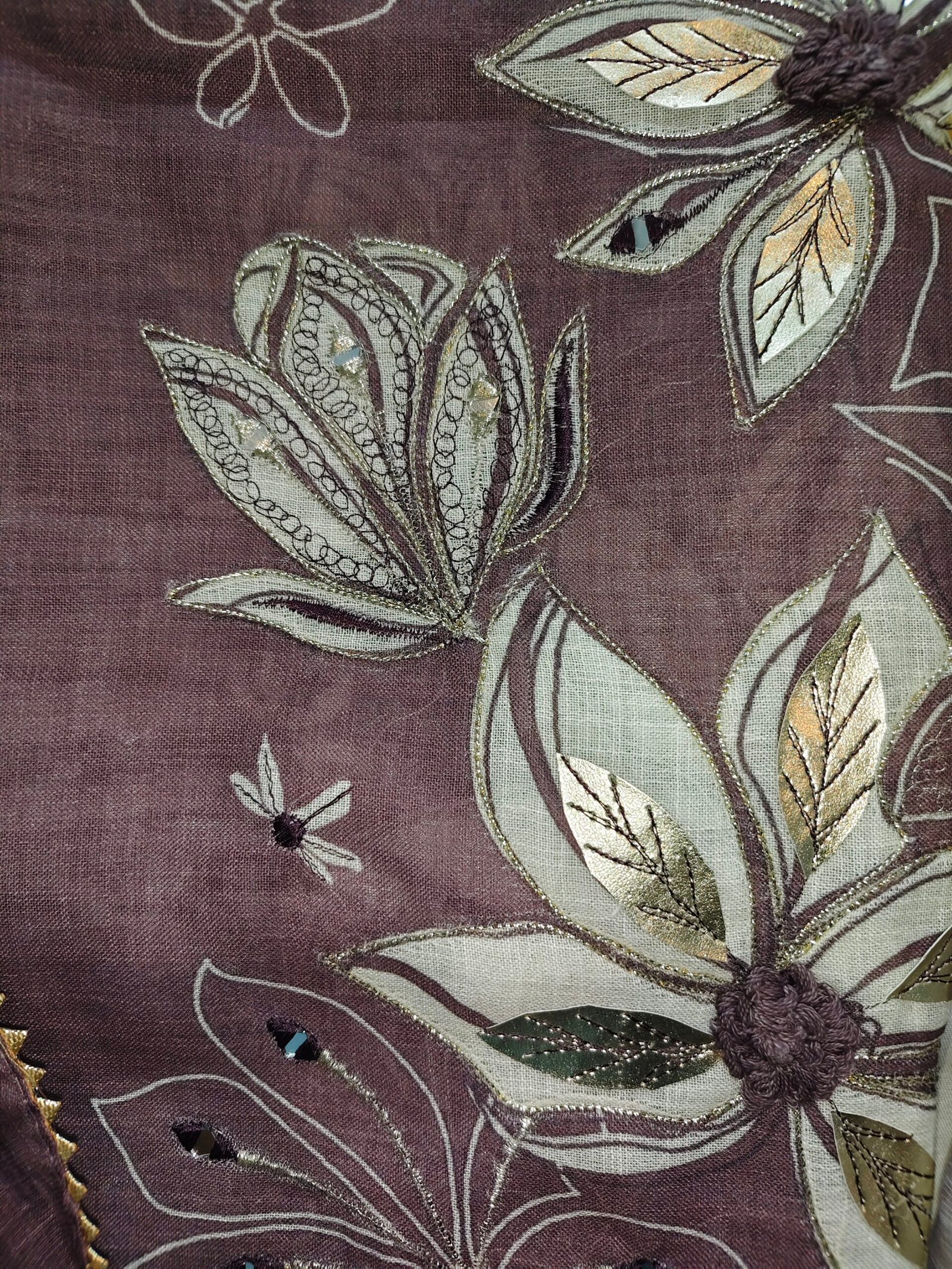 Linen cotton 3-piece suit with mirror and leather work all over kurta Bottom -cotton