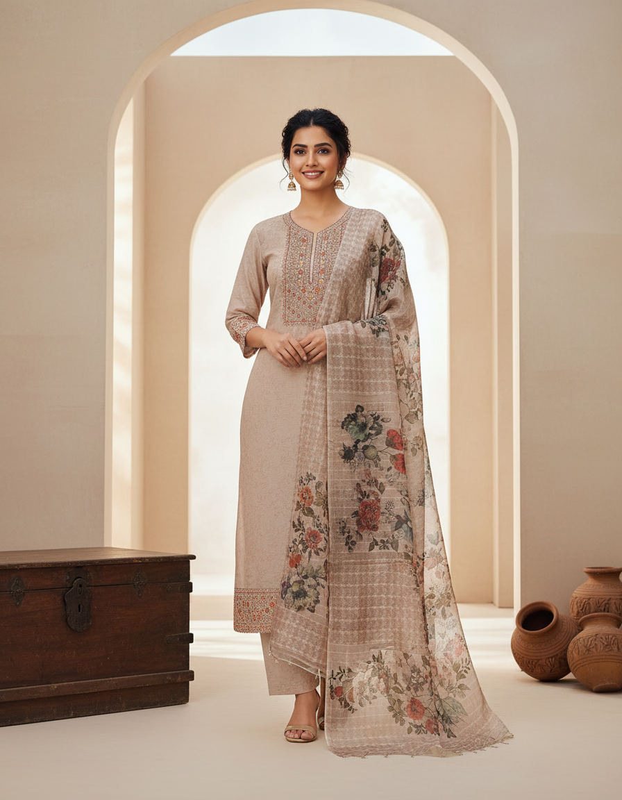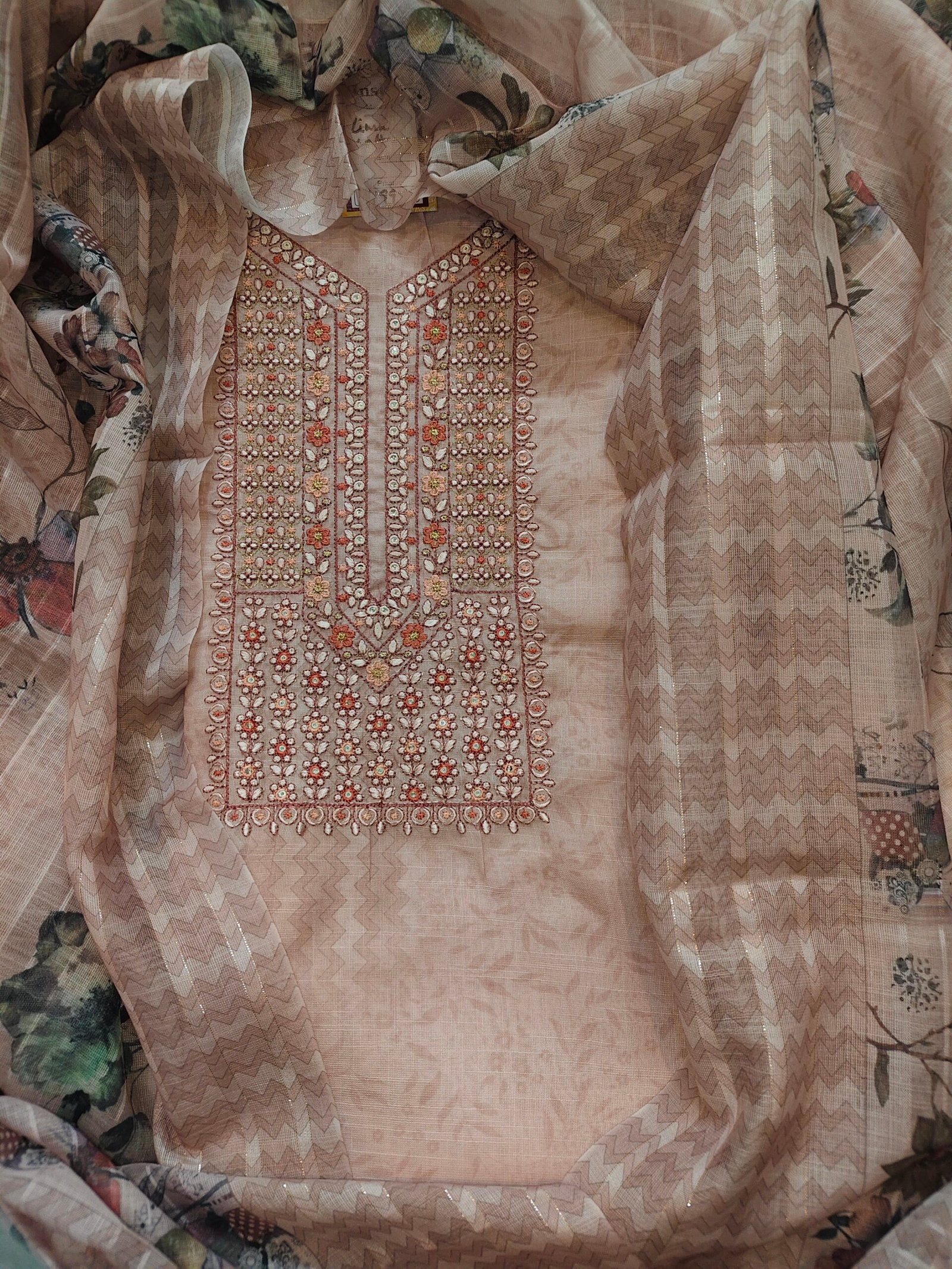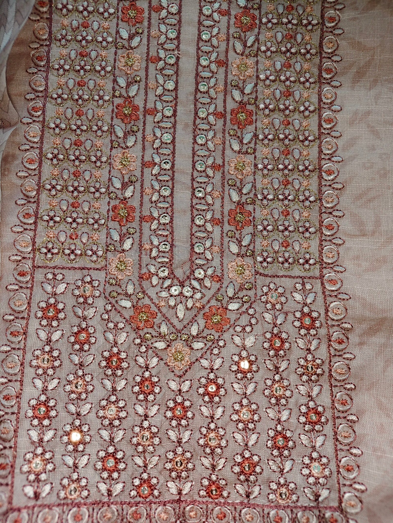 Linen cotton 3-piece suit with embroidery on neckline. Bottom -Santoon